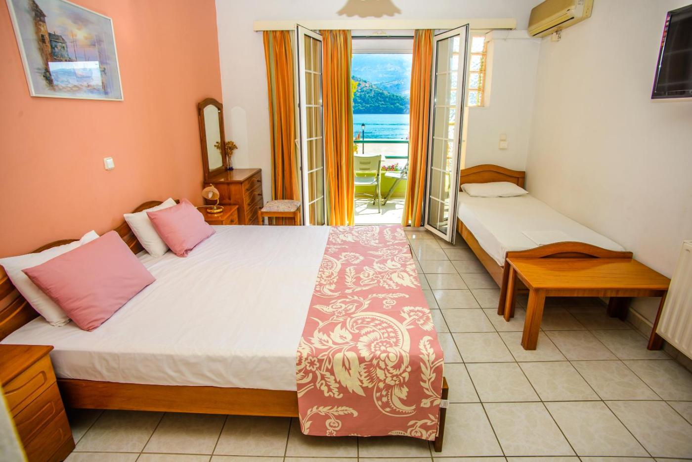 Deluxe Double Room with Balcony and Sea View. Enjoying full views over the Ionian Sea from its balcony, this apartment has a separate bedroom, a seating area and a well-equipped kitchenette. Air conditioning, a TV and free Wi-Fi are available.