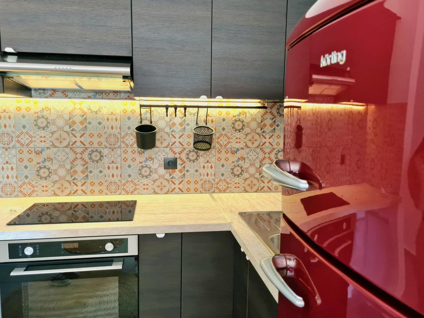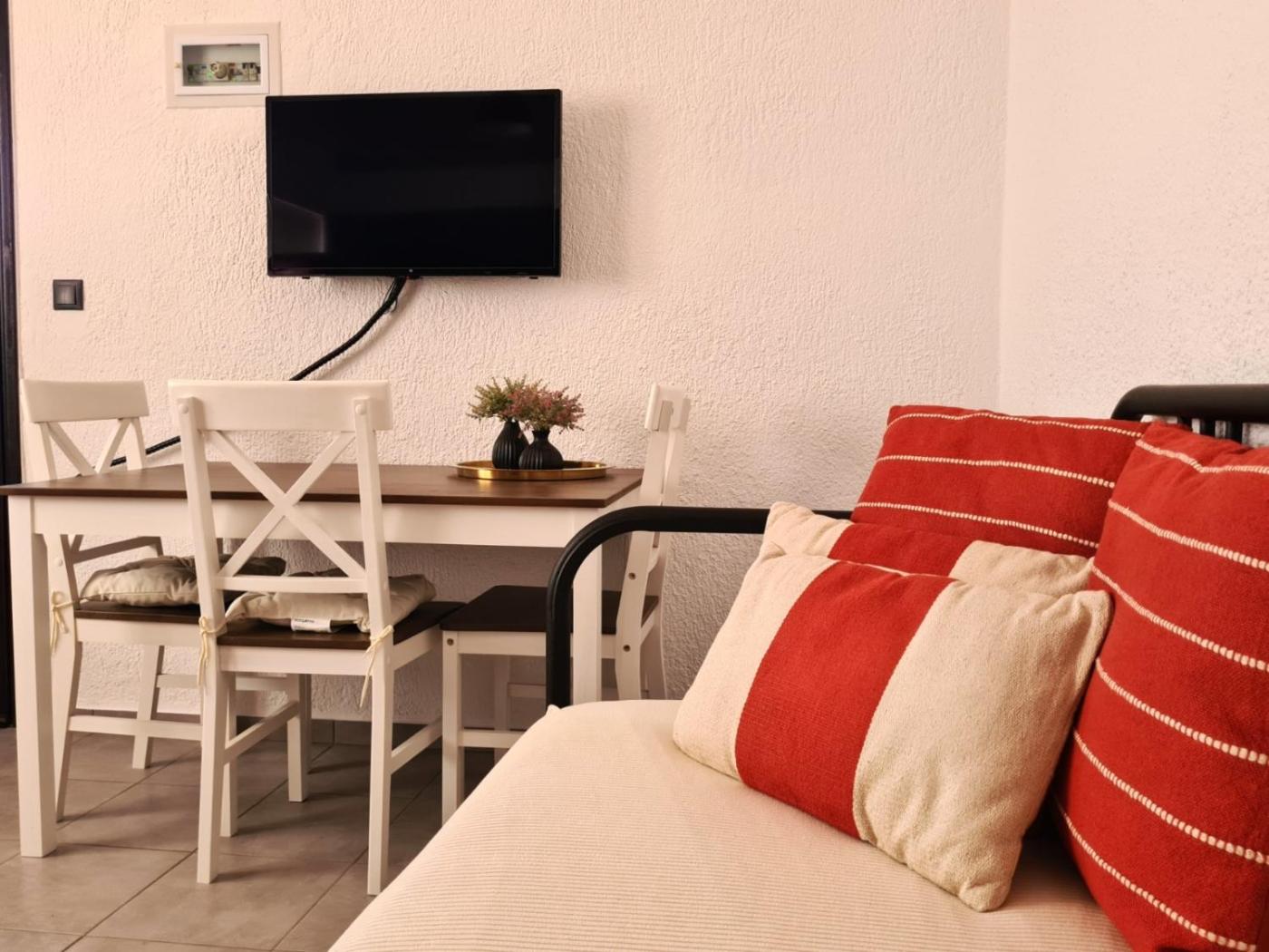 One-Bedroom Apartment. Boasting a private entrance, this air-conditioned apartment includes 1 living room, 1 separate bedroom and 1 bathroom with a shower and a hairdryer. In the well-fitted kitchen, guests will find a stovetop, a refrigerator, kitchenware and an oven. Featuring a terrace with garden views, this apartment also offers a washing machine and a flat-screen TV. The unit has 2 beds.