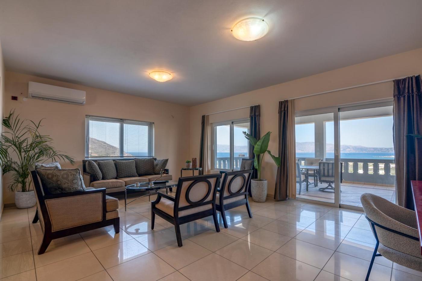 Three-Bedroom Villa. Featuring a private entrance, this air-conditioned villa comprises 1 living room, 3 separate bedrooms and 2 bathrooms with a bath and a shower. The well-fitted kitchen features a stovetop, a refrigerator, a dishwasher and kitchenware. Boasting a terrace with sea views, this villa also provides a washing machine and a flat-screen TV. The unit offers 3 beds.